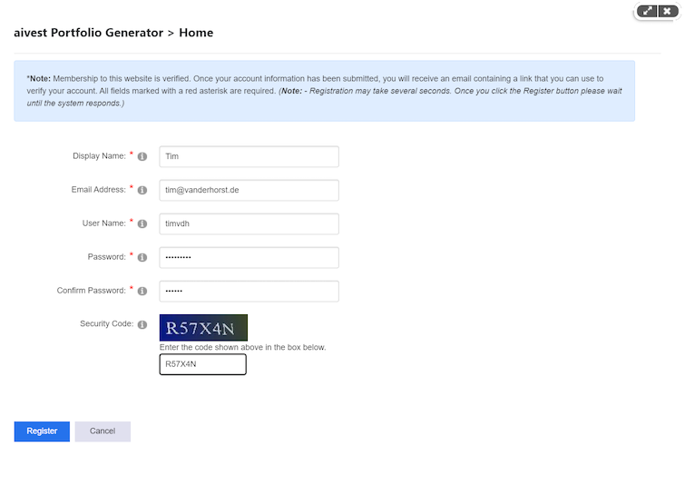 Registration is quick and painless. Your email address is required to inform you about changes in your portfolio. Your email address will never be used for anything other than such notifications or very rare system information.