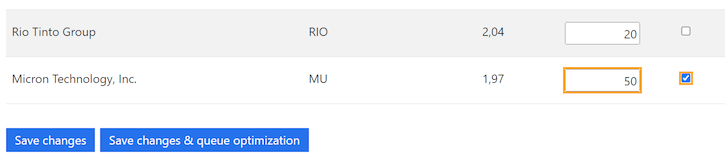 You can change the amount, but reoptimization will only take that number as a starting point and adjust the amount if needed for efficiency. If you want to force a position to a specific number, you must also activate the "Locked" checkbox. You can set the amount to zero and activate "Locked" if you do not want a certain stock in your portfolio.